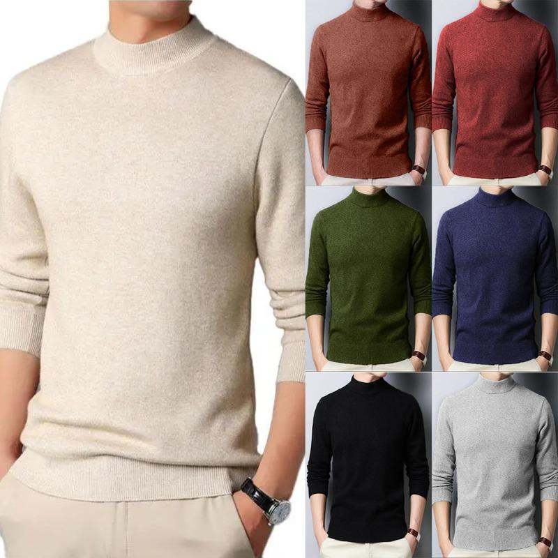 Новый осенне-зимний свитер с воротником-стойкой, мужские однотонные пуловеры, мужская полуводолазка, трикотаж, модная повседневная мужская одежда — купить товар онлайн с бесплатной доставкой по всему миру!