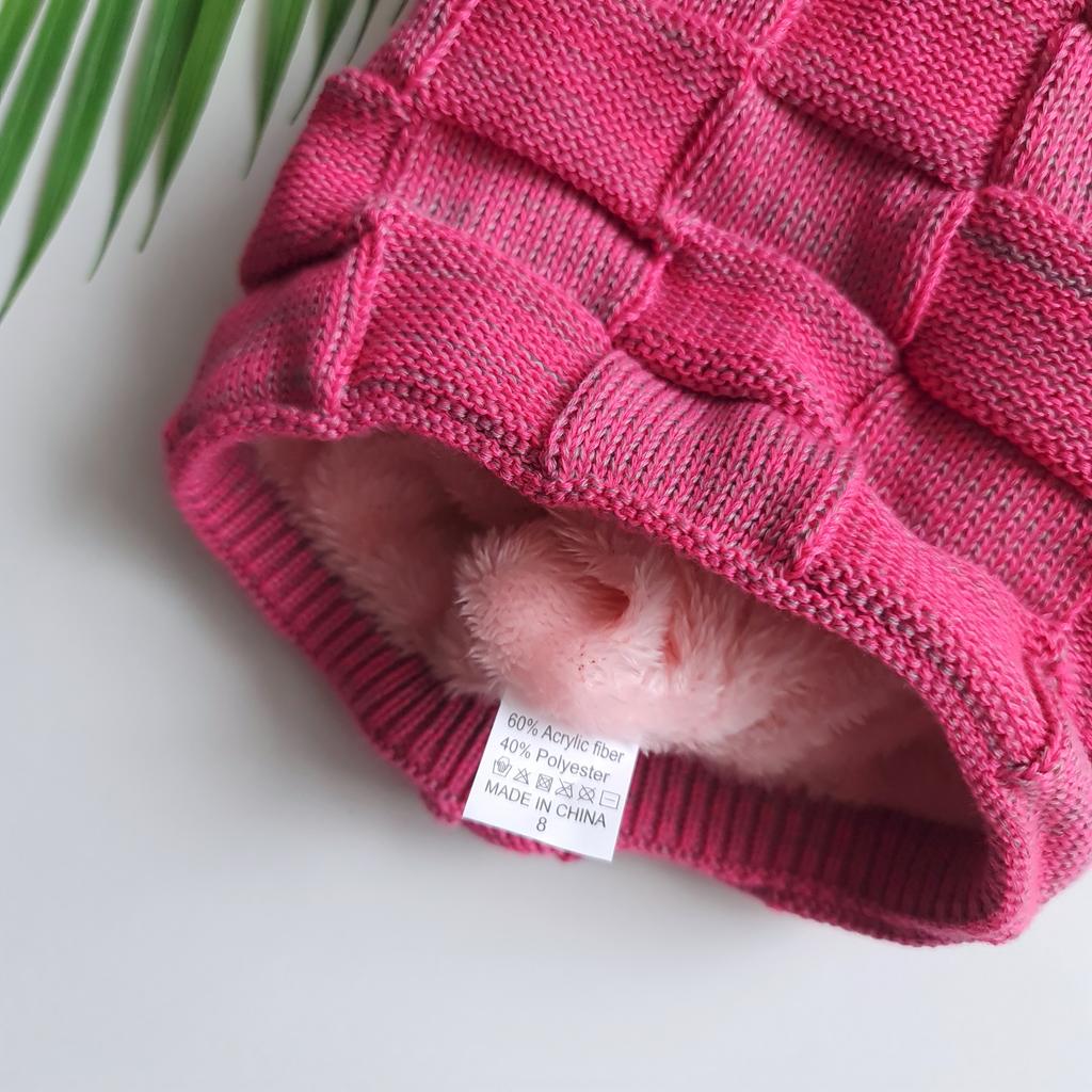 Вязаная шапочка с плюшевой подкладкой. Цвет выбрала розовый, в реальности он меланжевый - переплетение светло-розовых и серых нитей. Вязка такая интересная, шахматная, внутри плюшевая подкладка тоже розового цвета. Продавец положил резиночку для волос в подарок. Окружность головы у меня 55.5 см, точно подойдёт и на бОльший объем. Шапочка теплая, не продувается. Состав на этикетке: 60% акрил, 40% полиэстер. Пряжа не пушистая, думаю, что катышек не будет. Симпатичная шапочка, рекомендую к покупке. Доставка: Заказала 21.10 Доставили 24.11.