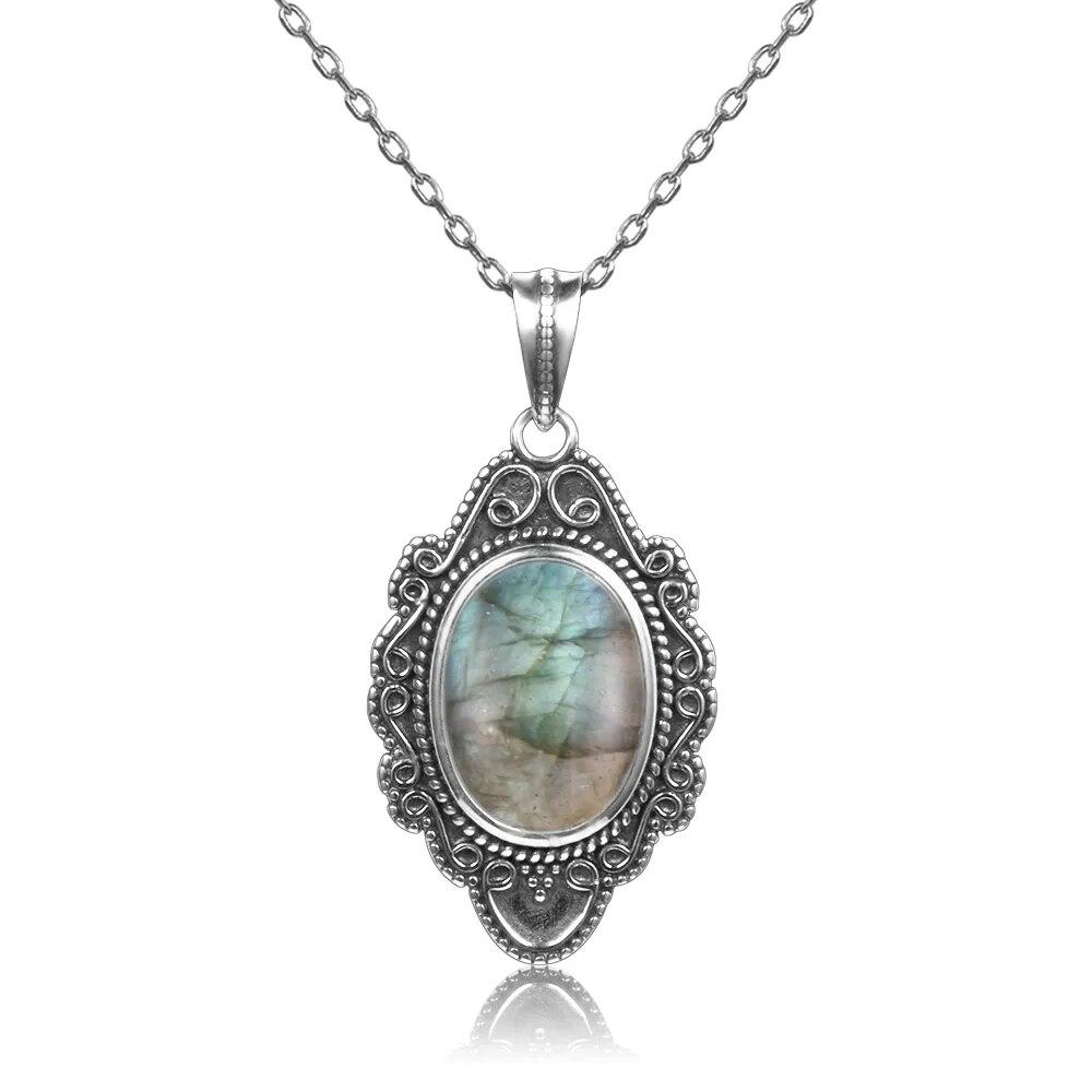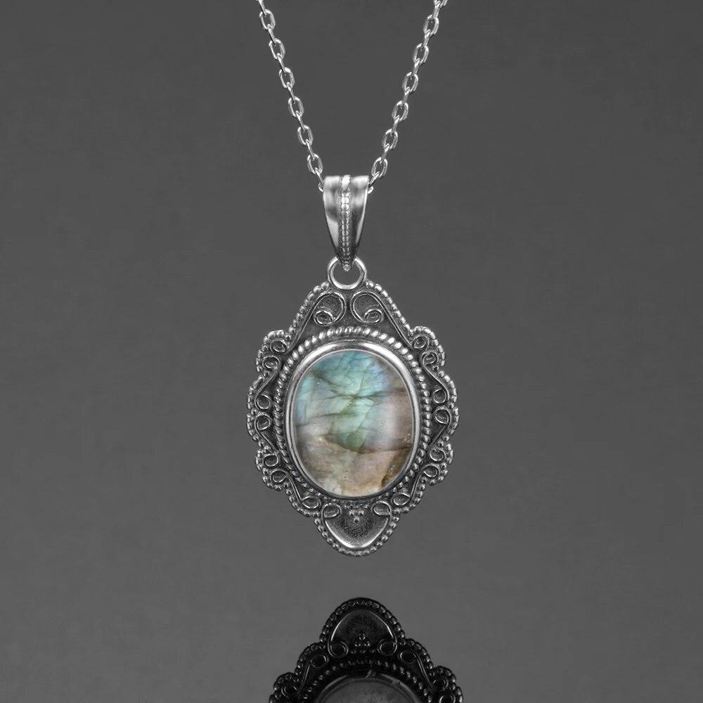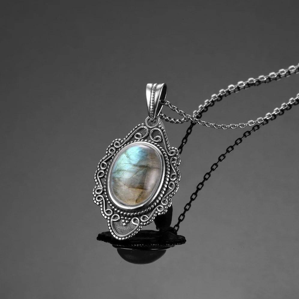 Натуральный лунный камень, лабрадорит, ожерелье, подвески, серебряные украшения для женщин, вечерние подарки на День святого Валентина с цепочкой