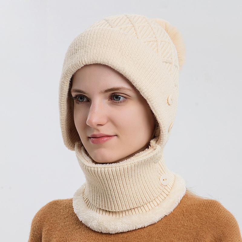 Шапка-шарф, интегрированная женская осенне-зимняя теплая вязаная шапка, велосипедная бархатная пуловерная кепка, ветрозащитная шерстяная шапка с защитой ушей