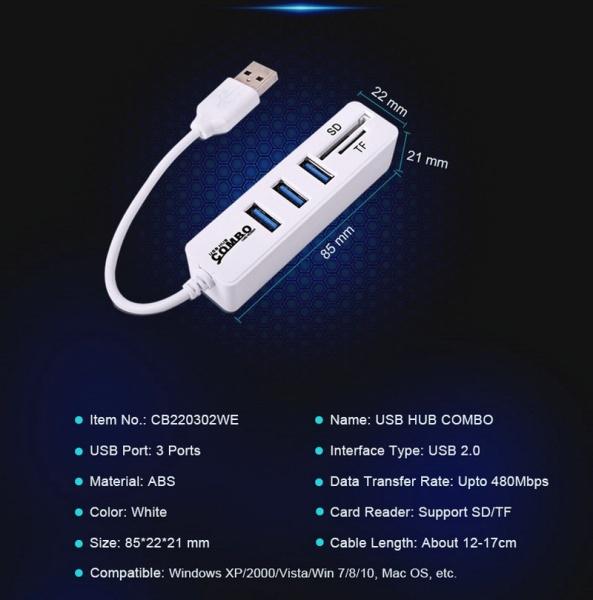 3-портовый концентратор USB 2.0 с устройством быстрого чтения SD и TF, многофункциональный разветвитель USB на 3 2 USB-кабеля, адаптер для ПК с возможностью горячей замены и горячей заменой