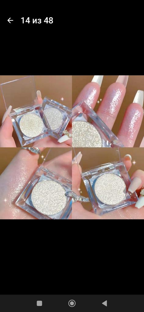 Блестящие тени для век представляют собой палитру, которая включает в себя перламутровый хайлайтер и пудру для макияжа. Эти продукты идеально подходят для создания яркого и блестящего макияжа глаз.