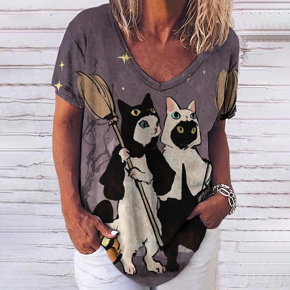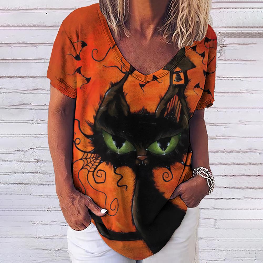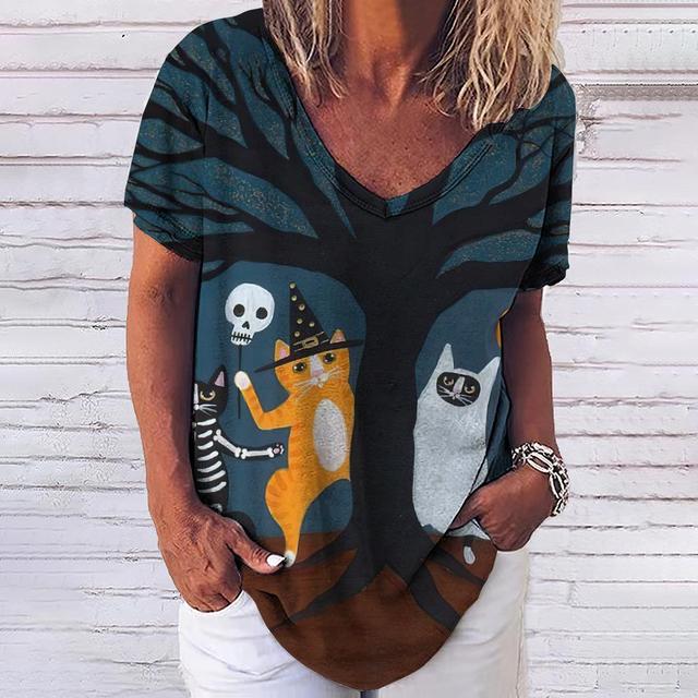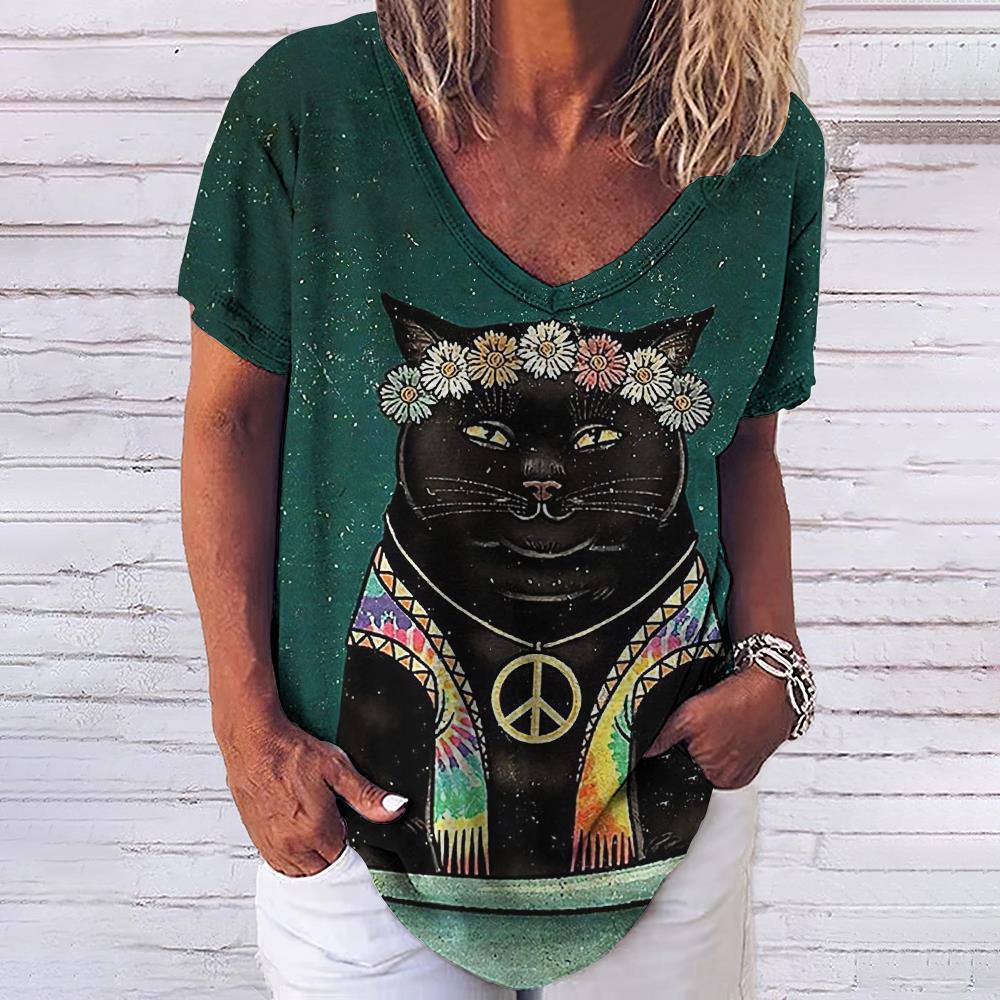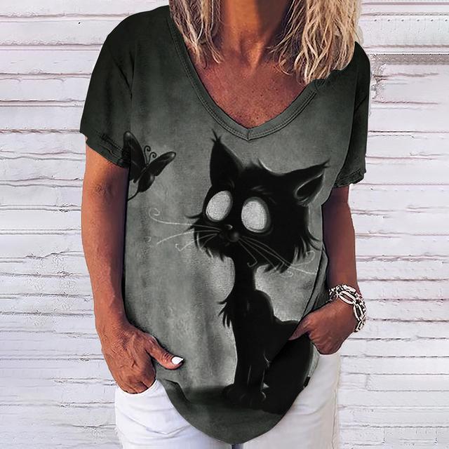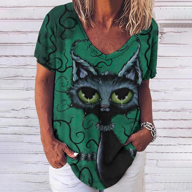 Женская футболка с 3d модным принтом кота, v-образным вырезом и коротким рукавом, базовые топы, уличная одежда, летняя повседневная женская одежда больших размеров, 5XL
