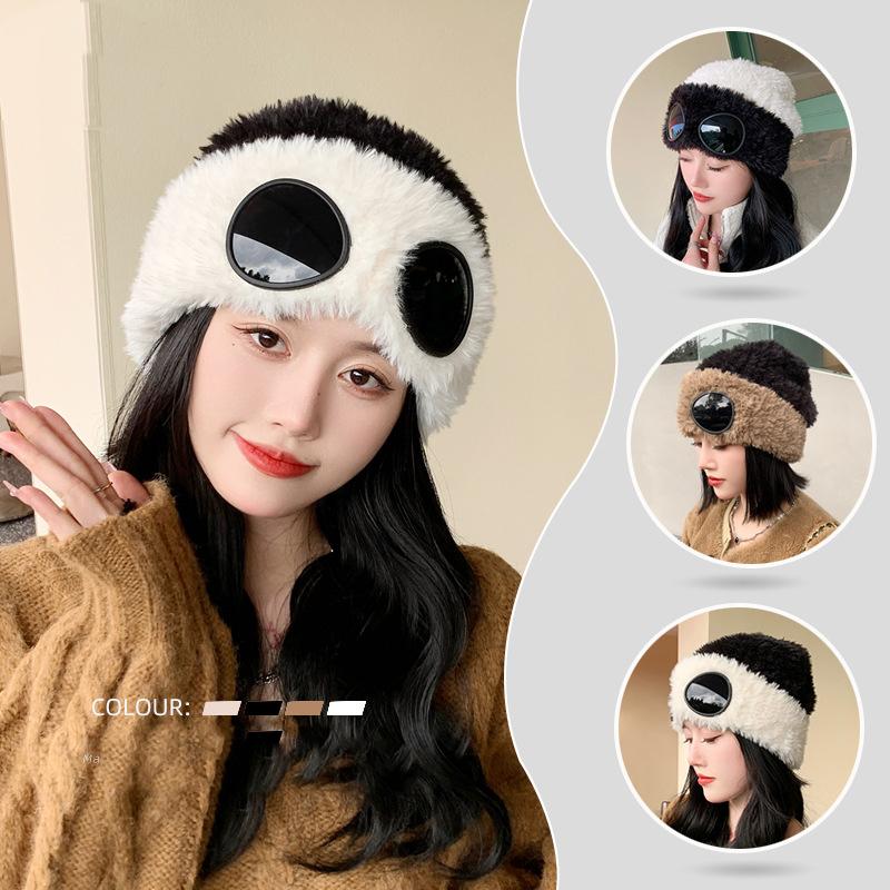Женская ветрозащитная шапка для очков, зимняя теплая вязаная шерстяная шапка с защитой ушей