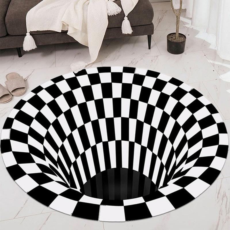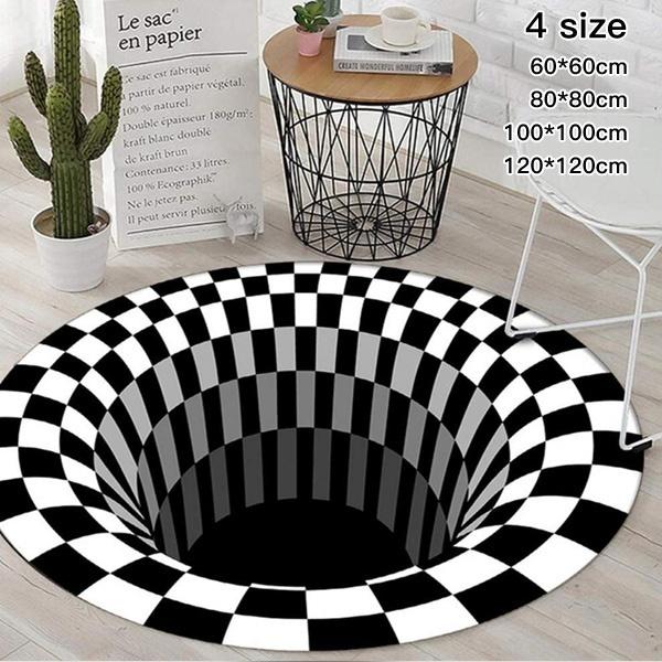 3D круглые ковры для гостиной, простые черно-белые 3D ковры со стереовидением, геометрические противоскользящие коврики для дома, спальни