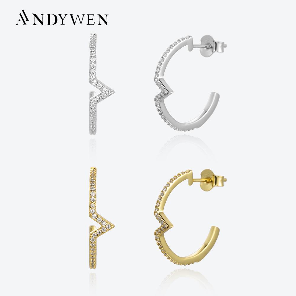 ANDYWEN Серьги-гвоздики из стерлингового серебра 925 пробы с цирконами и фианитами в виде пирсинга, 2023 г., рок-панк, кристаллы, ювелирные украшения