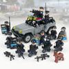 X010 Серый волк Внедорожник Строительный блок из мелких частиц Черная кукла SWAT Игрушка-строительный блок