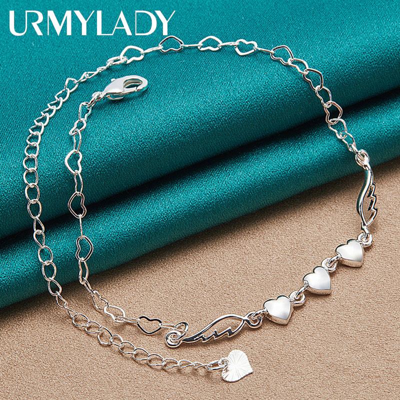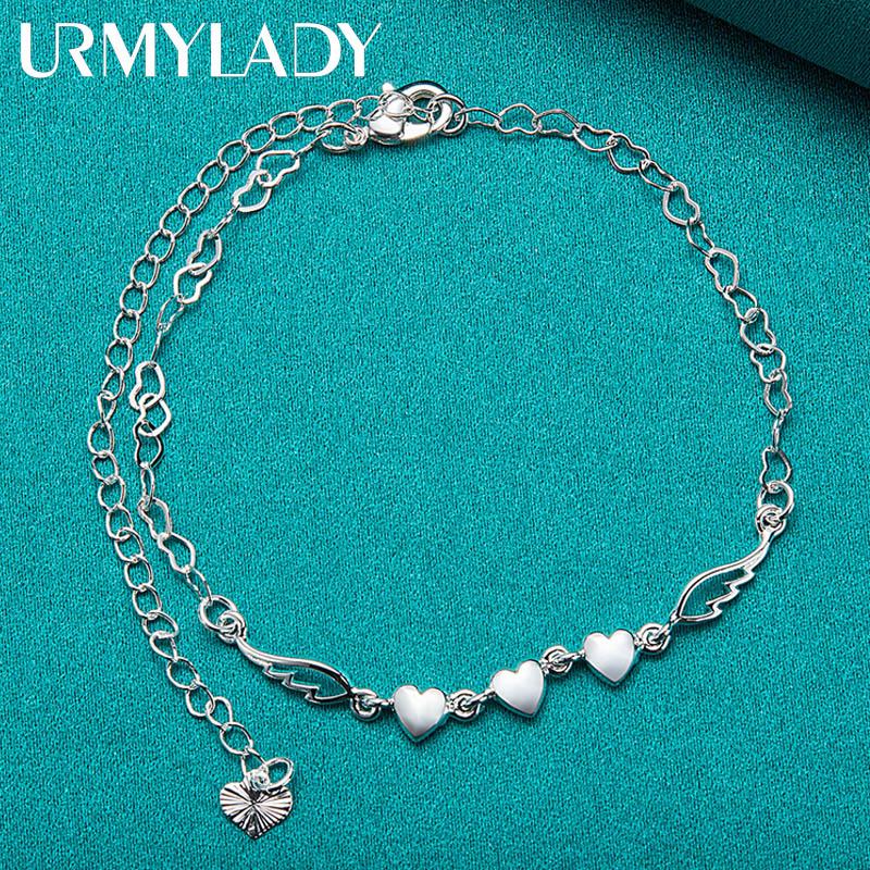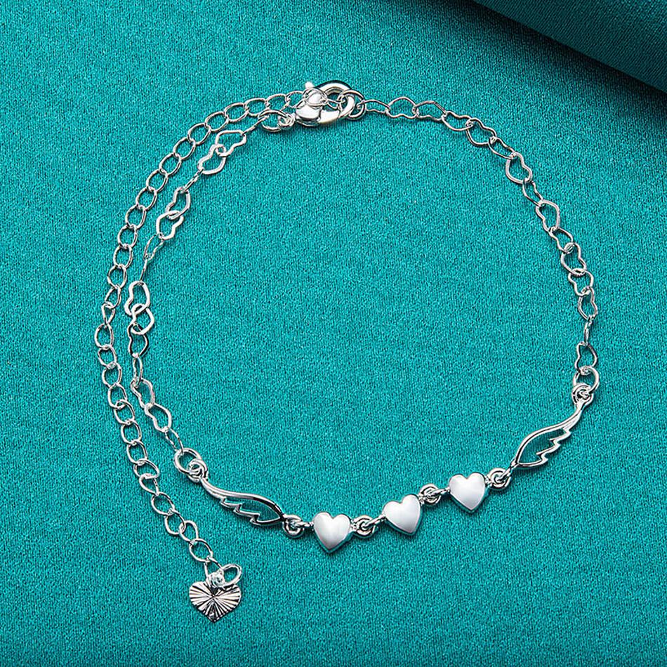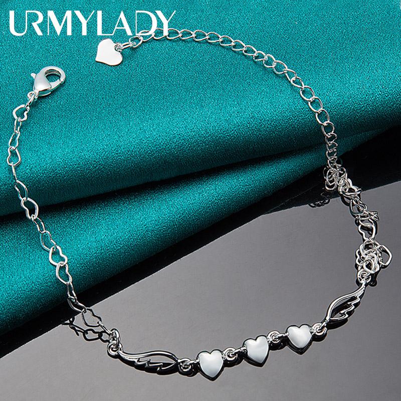 Браслет из стерлингового серебра 925 пробы с тремя сердцами для женщин, свадебная вечеринка, модные очаровательные ювелирные изделия