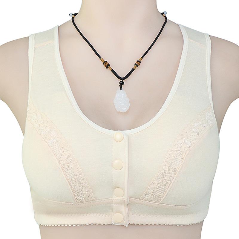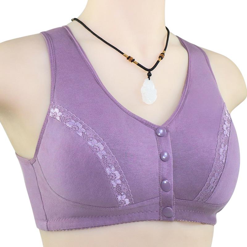 Хлопковое нижнее белье с пряжкой спереди и кружевом для женщин. Бюстгальтеры в стиле хлопкового жилета для женщин среднего и пожилого возраста, большие размеры без нижнего белья со стальным кольцом.