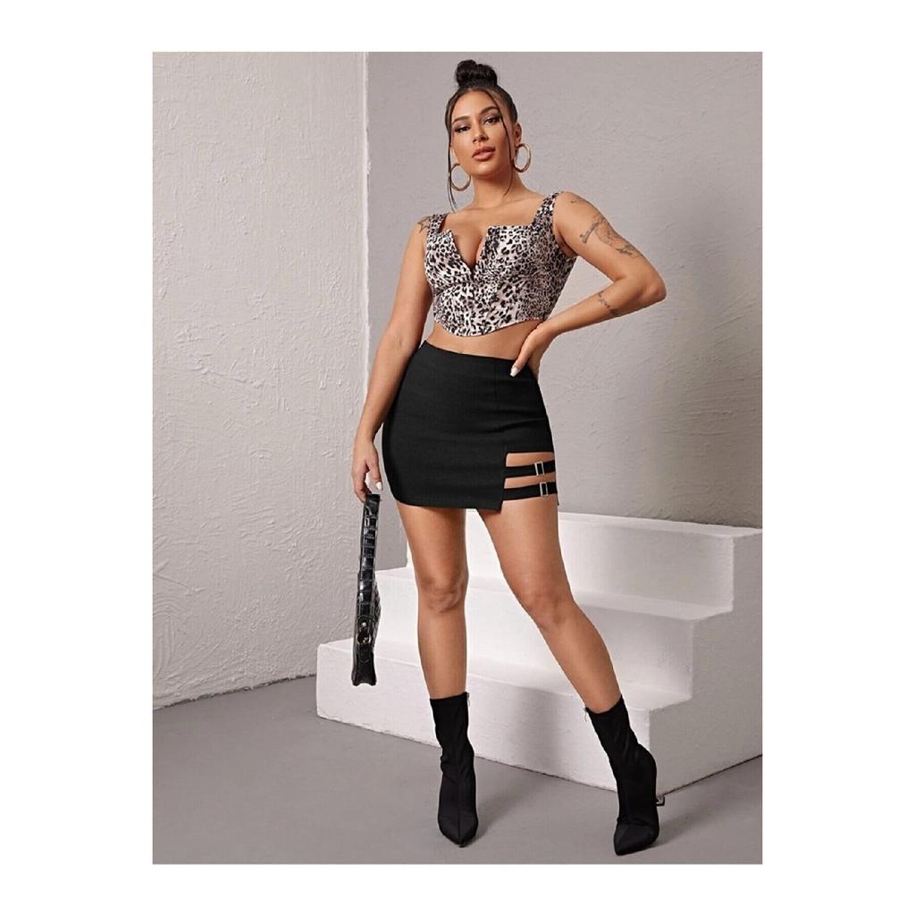 Женская черная мини-юбка с двойной пряжкой