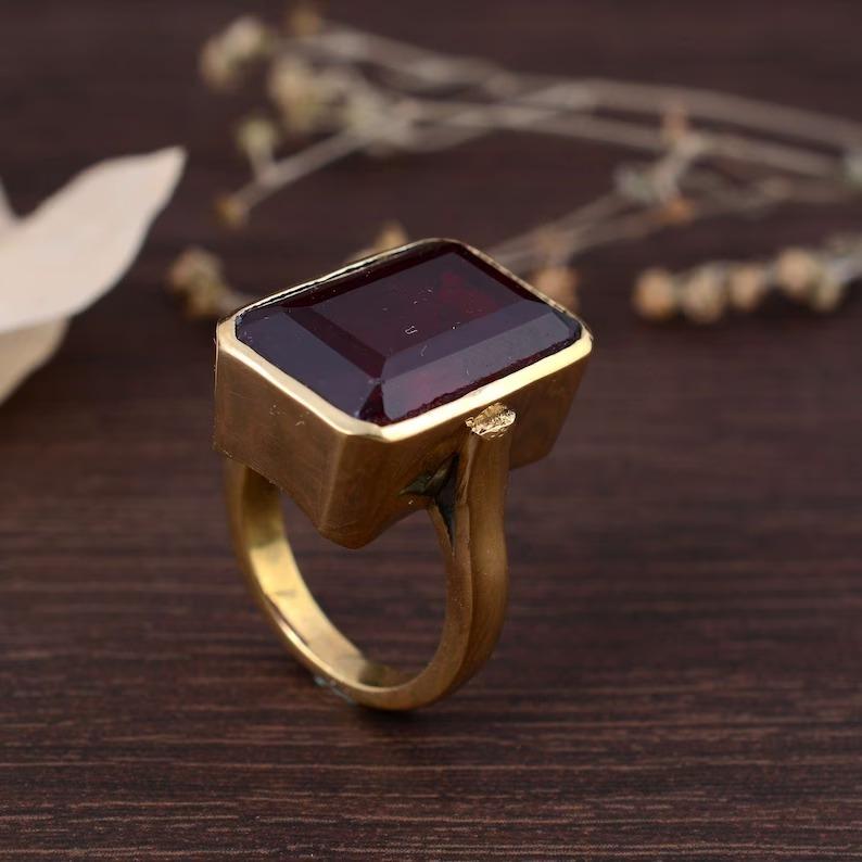 Кольцо из желтого золота с гранатом и драгоценным камнем, серебро 925 пробы, составное кольцо, подарочное кольцо на годовщину, богемное кольцо, подарок для нее