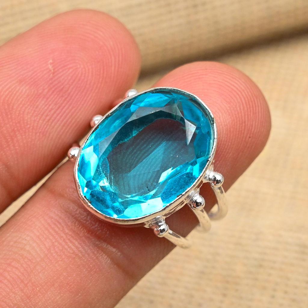 Ювелирное кольцо ручной работы из стерлингового серебра 925 пробы с синим топазом для подарка на День Благодарения