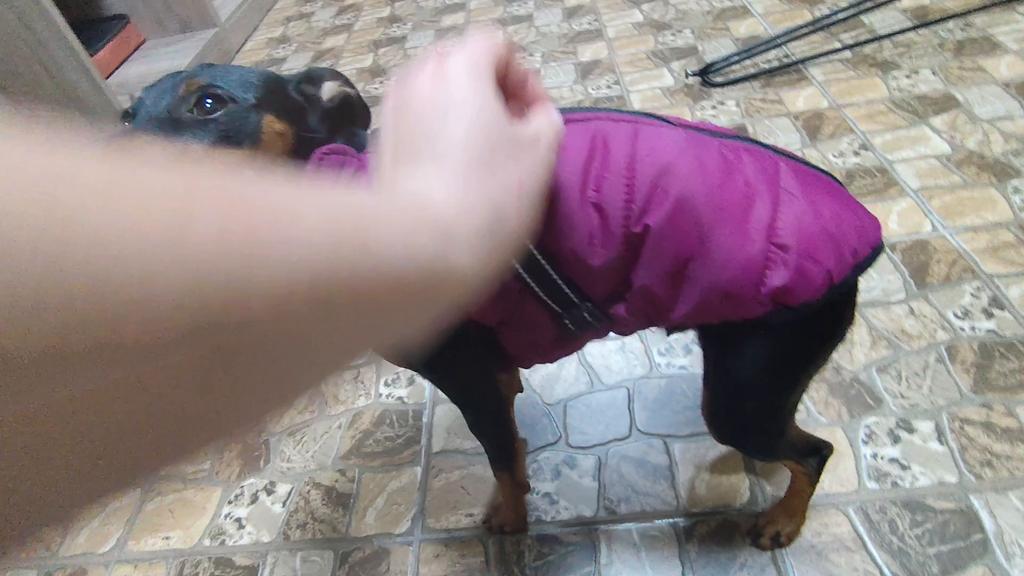 Посылка пришла довольно быстро до Калининграда. Упакованно хорошо, качество отличное, размер совпадает (брали ХS, возраст собаки 3 месяца). Запаха не имеет. Поставщика рекомендую.