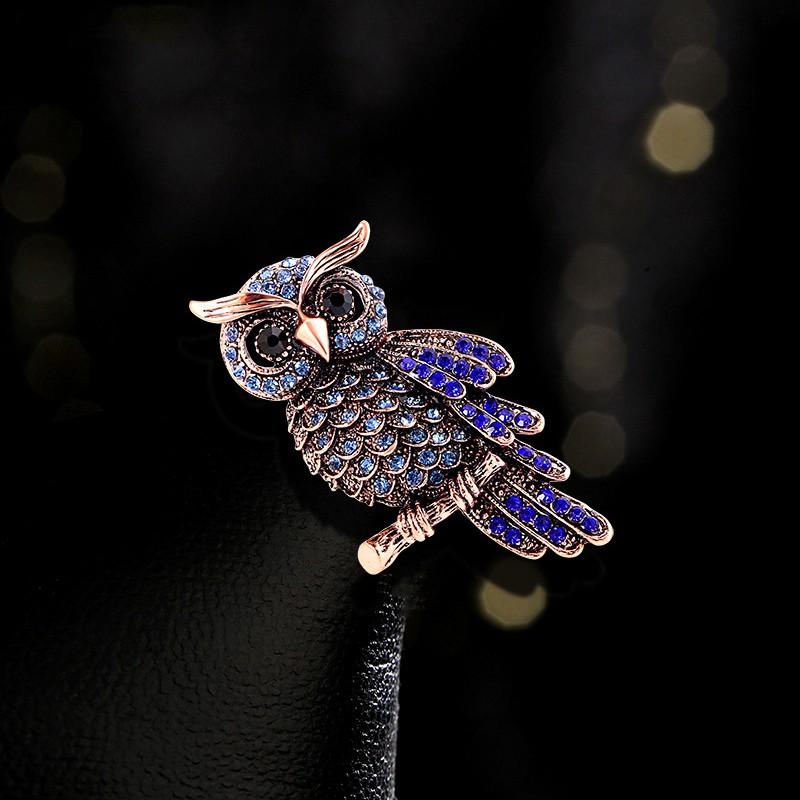 Винтажные классические металлические броши со стразами и совой для женщин, роскошный дизайн, темперамент, высококачественная брошь в виде животного, булавки, ювелирные изделия, подарки