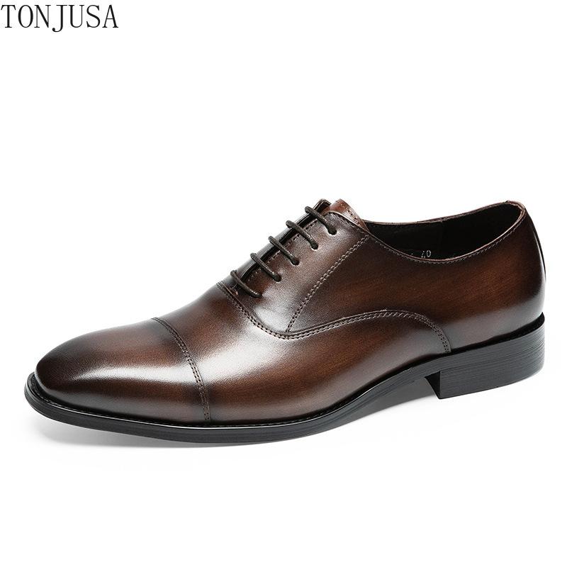Классические мужские кожаные туфли квадратной формы с тремя швами с верхним слоем из воловьей кожи для делового костюма и мужские туфли-оксфорды из натуральной кожи