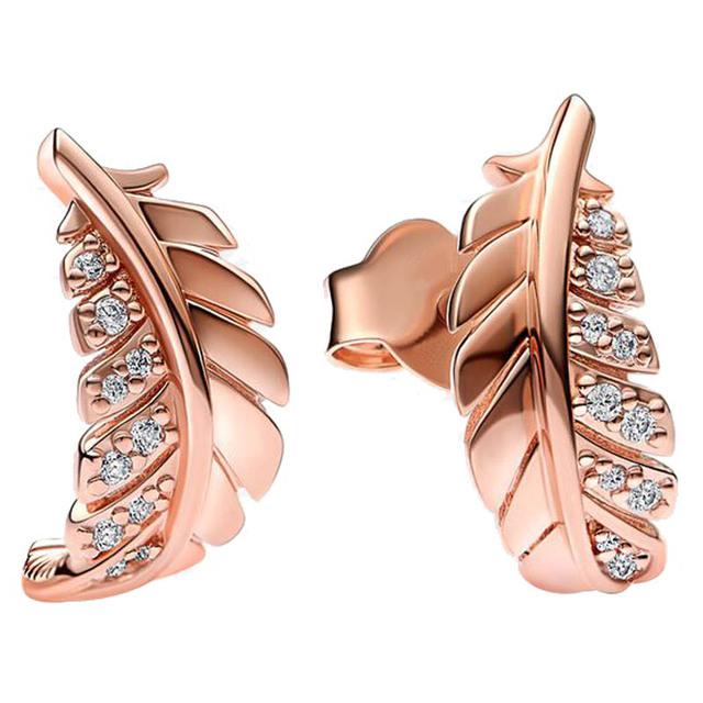 Аутентичные серьги из стерлингового серебра 925 пробы с волнистыми камнями бесконечности, плавающие изогнутые перья, сияющее сердце, модные серьги для женщин, подарочные ювелирные изделия