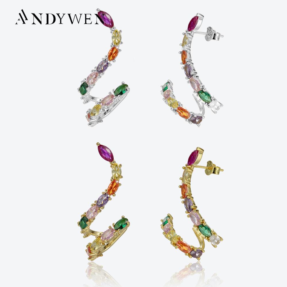 ANDYWEN, стерлинговое серебро 925 пробы, золото, радуга, CZ, обруч в виде змеи, серьги-гвоздики для пирсинга, Pendientes, 2023, роскошные ювелирные изделия — купить товар онлайн с бесплатной доставкой по всему миру!