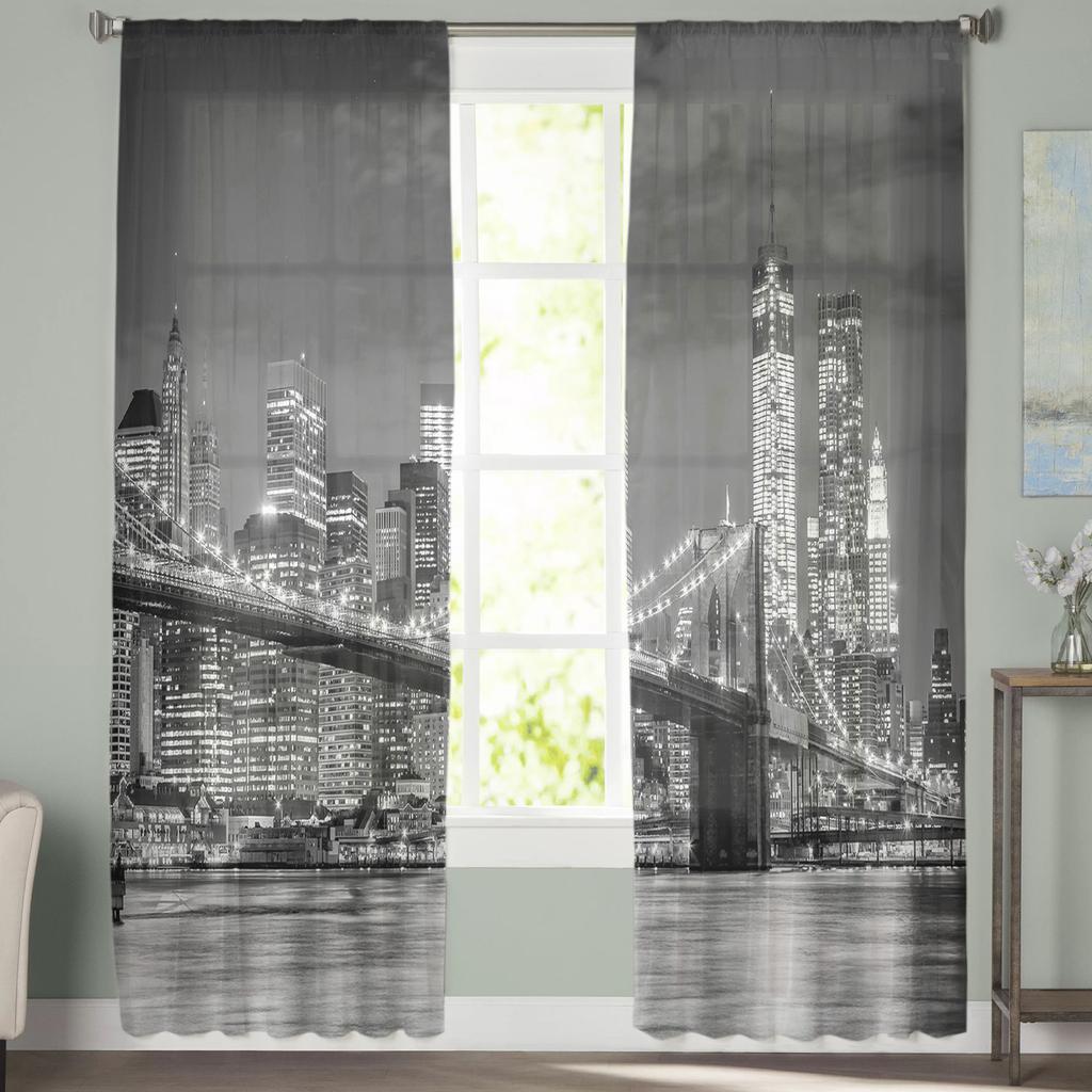 Бруклинский мост, Манхэттенская архитектура, тюлевые оконные шторы для спальни, дома, гостиной, вуаль, декор, прозрачные шторы, портьеры