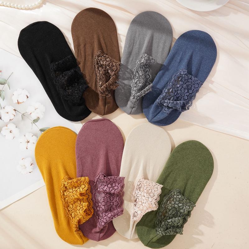Женские осенне-зимние утолщенные теплые флисовые носки, кружевные носки до щиколотки, нескользящие носки-тахо