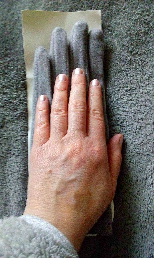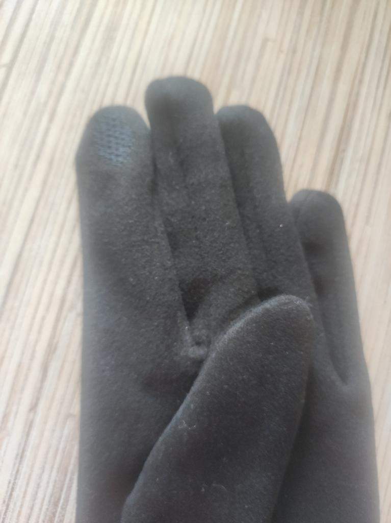 Хорошие перчатки, очень мягкие, выглядят маленькими, но тянутся и на полную руку. Сенсорные вставки на указательных пальцах работают, очень удобно