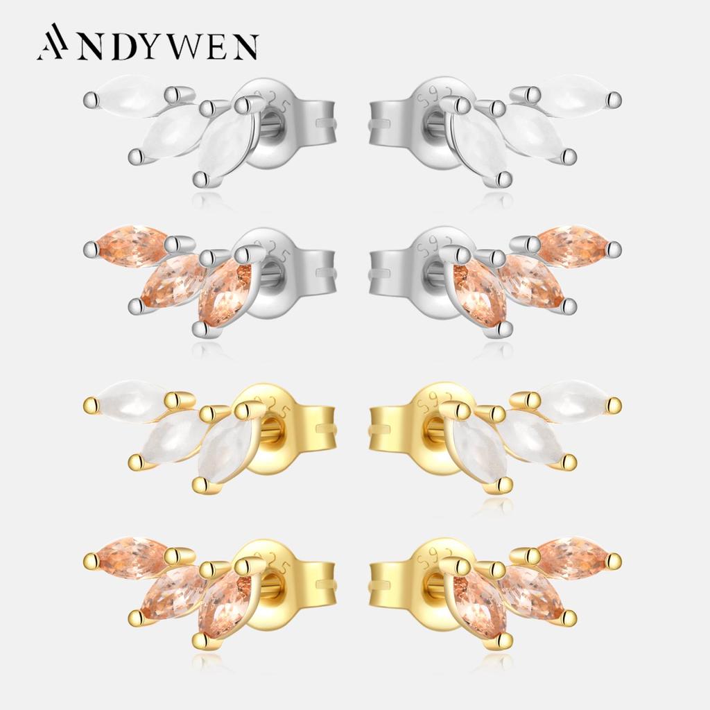 ANDYWEN Серьги-гвоздики из стерлингового серебра 925 пробы с тремя овалами и грушами, женские роскошные ювелирные изделия 2023 года, клипсы в стиле рок-панк