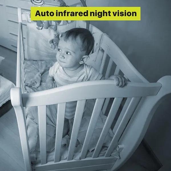 НОЧНОЕ ВИДЕНИЕ ВЫСОКОЙ ЧЕТКОСТИ. Ночное видение высокой четкости и; контроль температуры: Эта радионяня может постоянно контролировать деятельность младенцев. Другие встроенные функции включают автоматическое ночное видение, режим экономии голоса, контроль температуры, ручное панорамирование (355 градусов) и наклон (120 градусов), увеличение/уменьшение, таймер подачи.