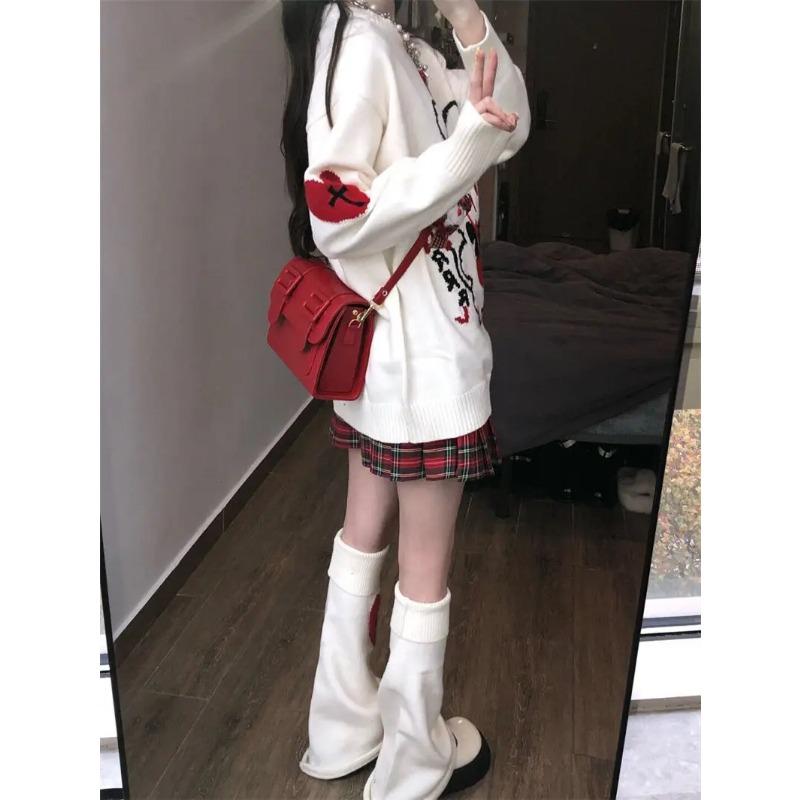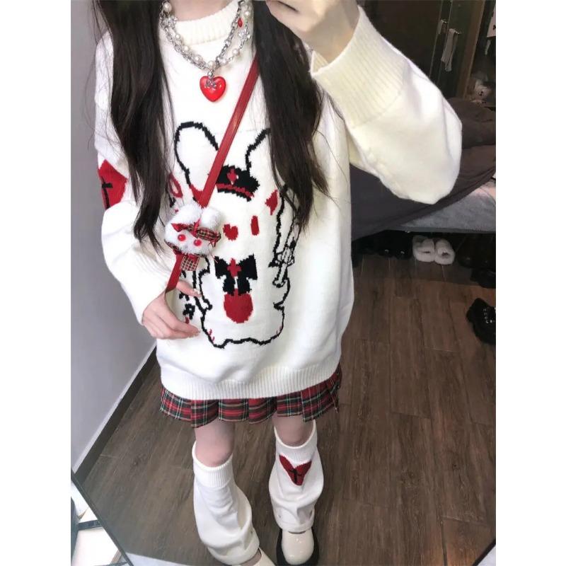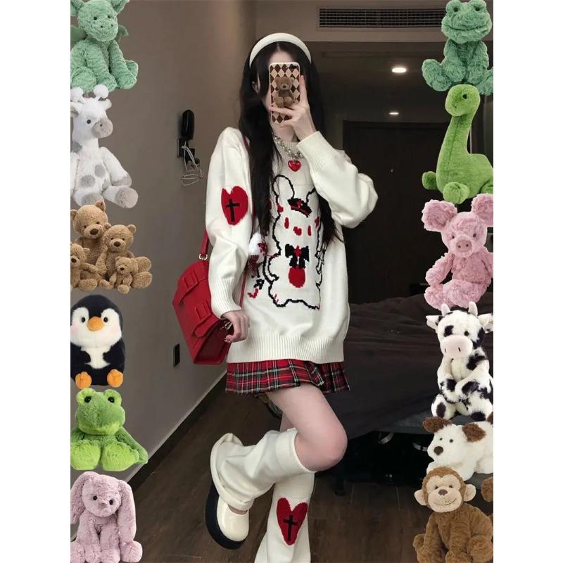 Harajuku Kawaii свитер женский японский мультфильм консервативный стиль свободный вязаный свитер E Girl осень-зима Y2K повседневные топы