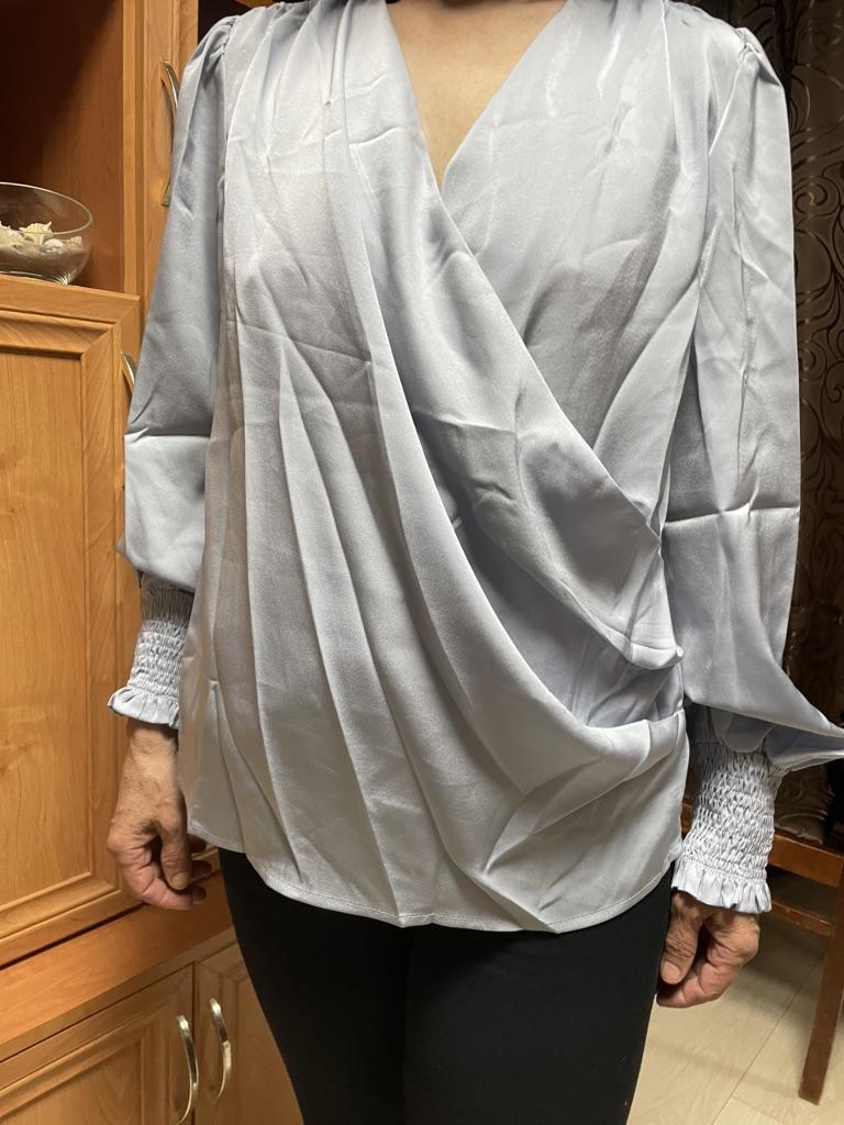 Плиссированная свободная рубашка с длинными рукавами и фонариком, женская элегантная женская простая блузка с перекрестным v-образным вырезом, однотонные повседневные топы, одежда 29658 — купить товар онлайн с бесплатной доставкой по всему миру!