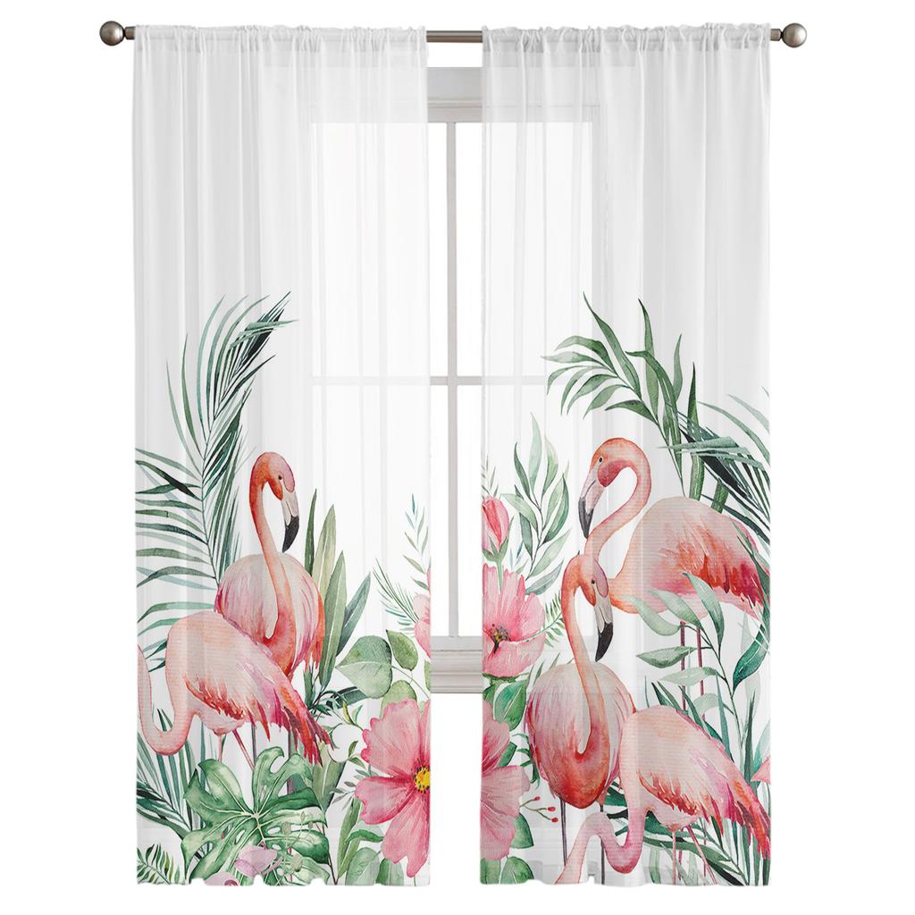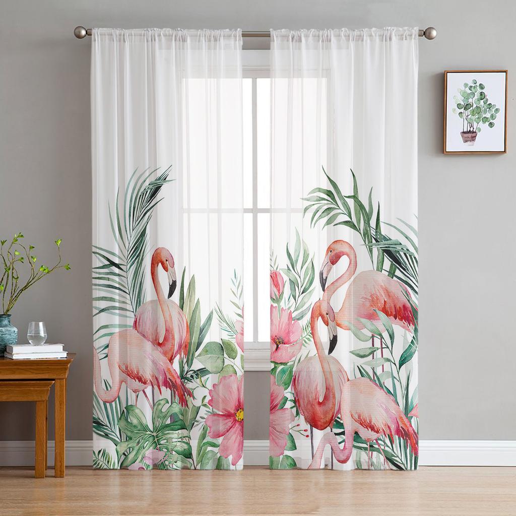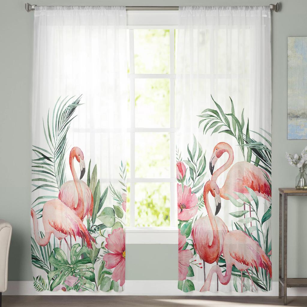 Садовый стиль, тропические растения, цветы, фламинго, вуаль, прозрачные шторы для гостиной, тюль, оконная занавеска, шторы для спальни, домашний декор