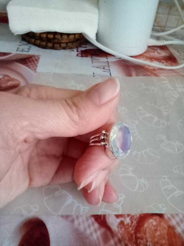 Кольцо получила. Большого восторга не вызвал. Опал, синтезированный. Выглядит, как лунный камень. Очень долгая доставка. Покупала на подарок, но пришлось оставить себе. Сегодня одела и выгулила кольцо. На солнышке смотрится по другому.