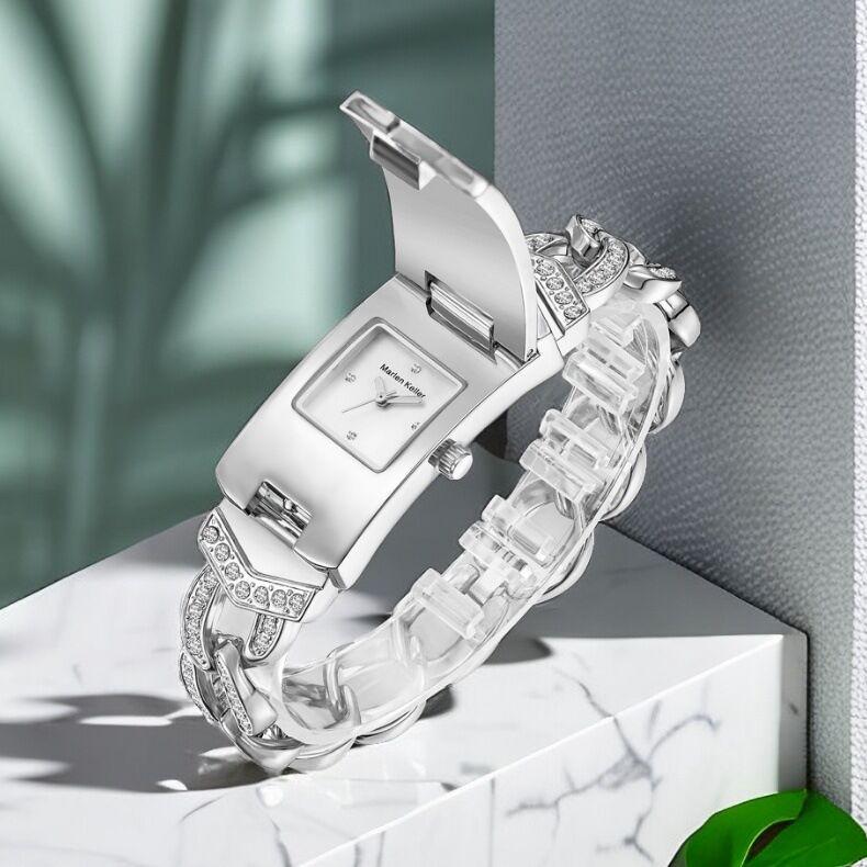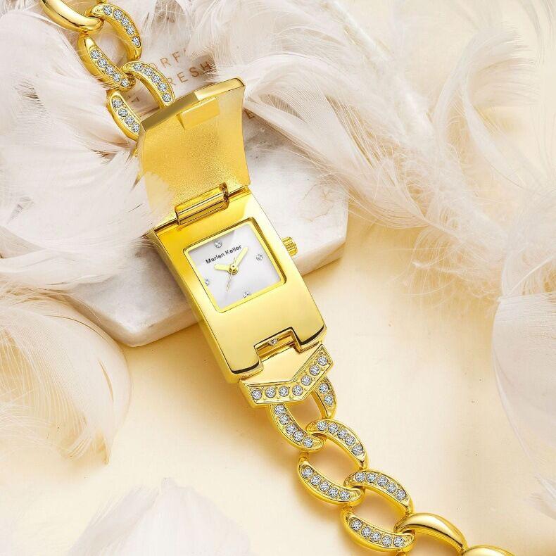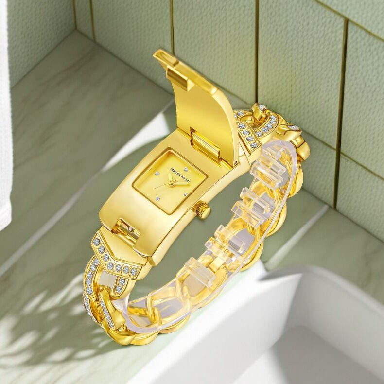 2023 Кварцевые часы с цепочкой из нержавеющей стали, модные золотые часы, женские наручные часы