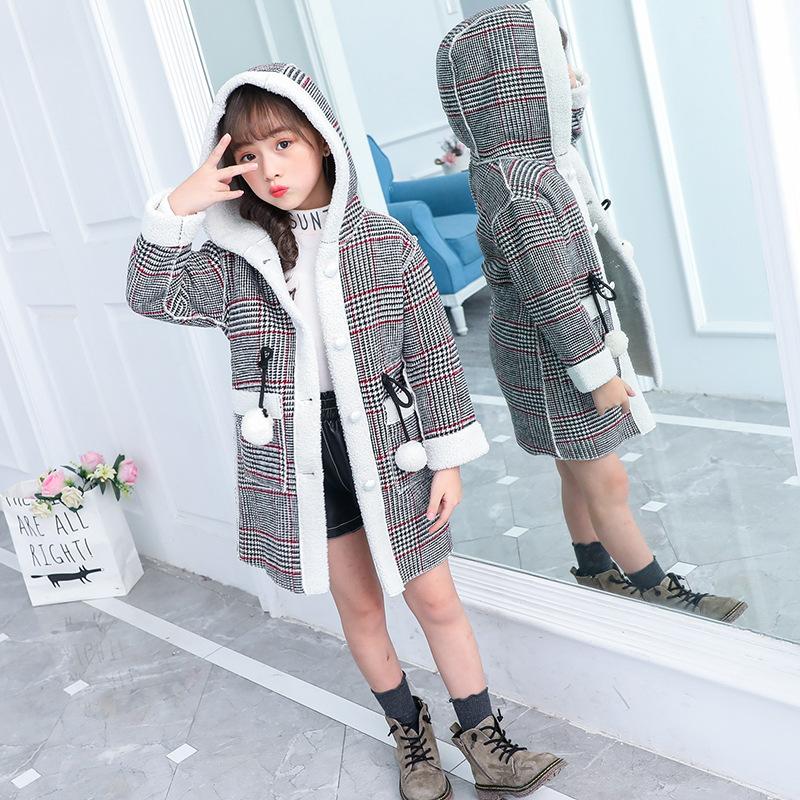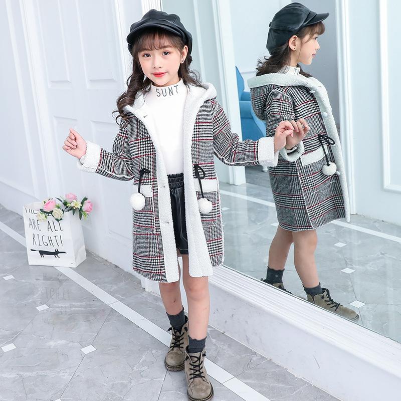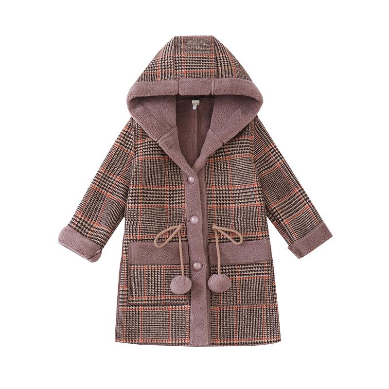 Пальто в клетку для девочек, осень/зима 2023, модное детское шерстяное пальто