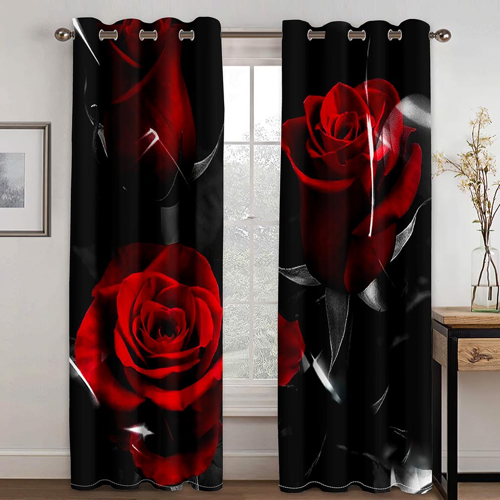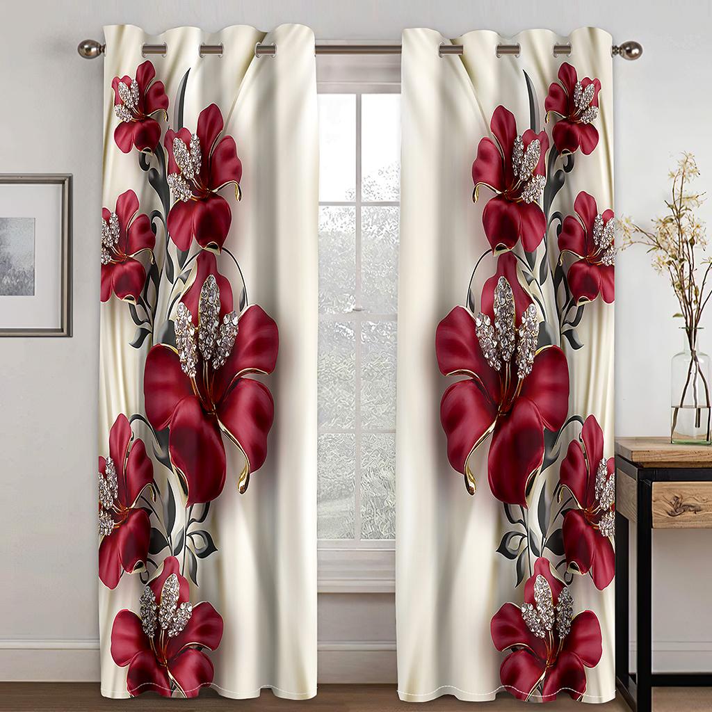Красная роза с цветком бриллианта и золота 3D дизайн Роскошные оконные шторы для девочек для гостиной Спальня Домашний декор 2 шт. Бесплатная доставка