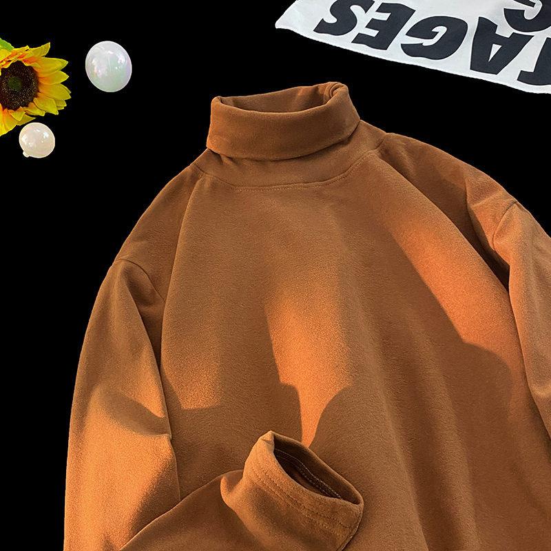 Свитшот для женщин, зимний, с высоким воротом, тонкий пуловер, простой однотонный цвет, рубашка, повседневные, тонкие бархатные топы
