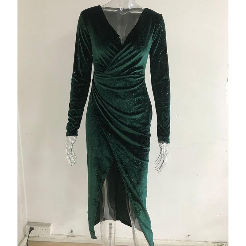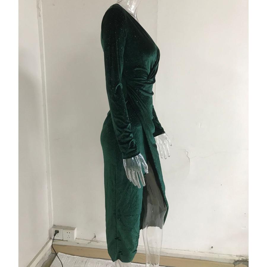 Женское осенне-зимнее золотое бархатное вечернее платье для ночного клуба, сексуальное облегающее платье до середины икры с открытыми ногами и длинными рукавами