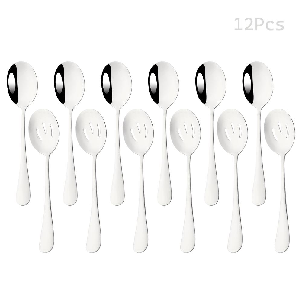 12 шт. набор ложек для салата из нержавеющей стали, кухонный сервер, посуда для макарон, общественная серебряная посуда с использованием инструментов для ресторана-шведского стола
