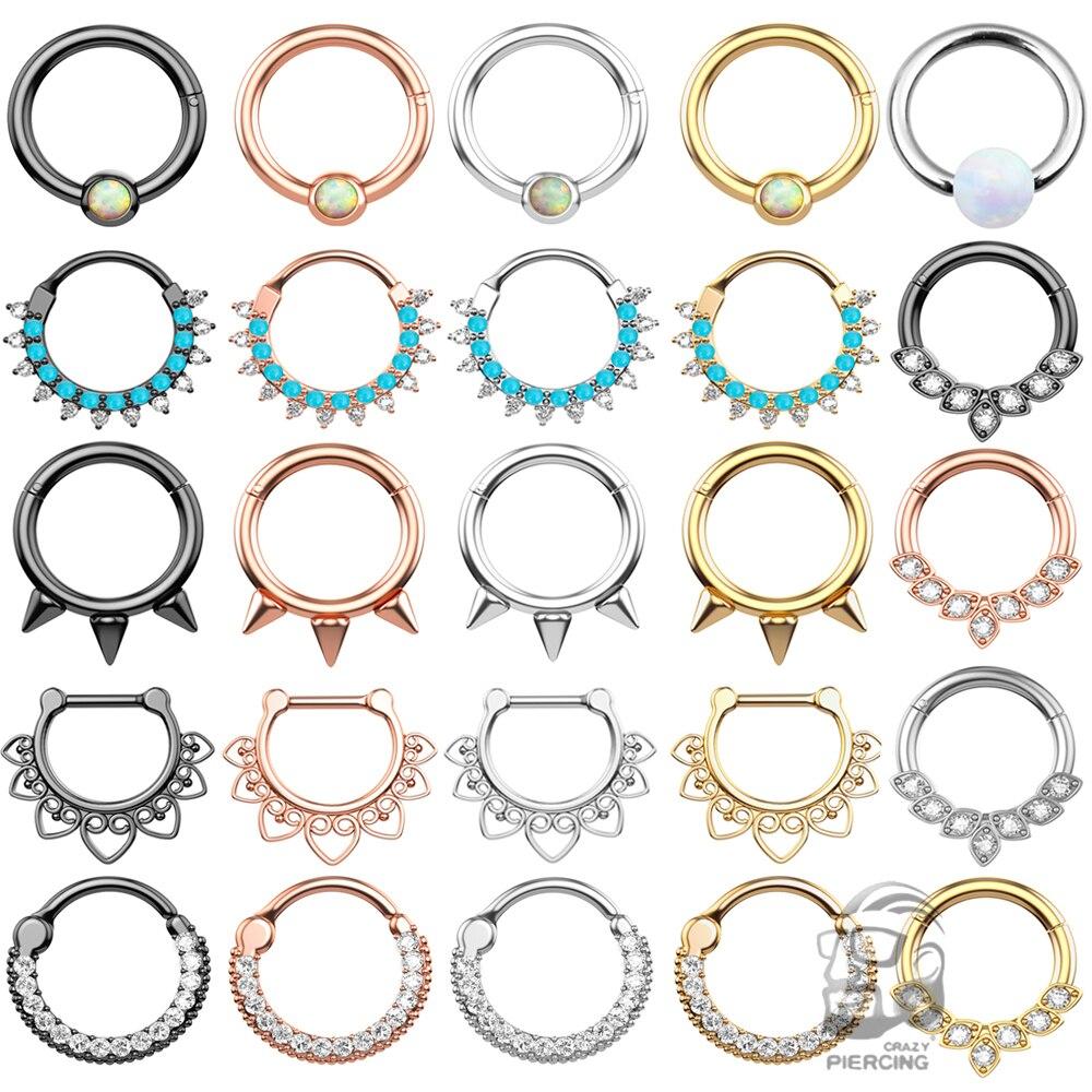 Хирургическая сталь, опал, перегородка, пирсинг-кликер, 16 г, кристалл, кольцо для пирсинга носа, серьги для пирсинга козелка, серьги Daith Helix, ювелирные изделия, соски