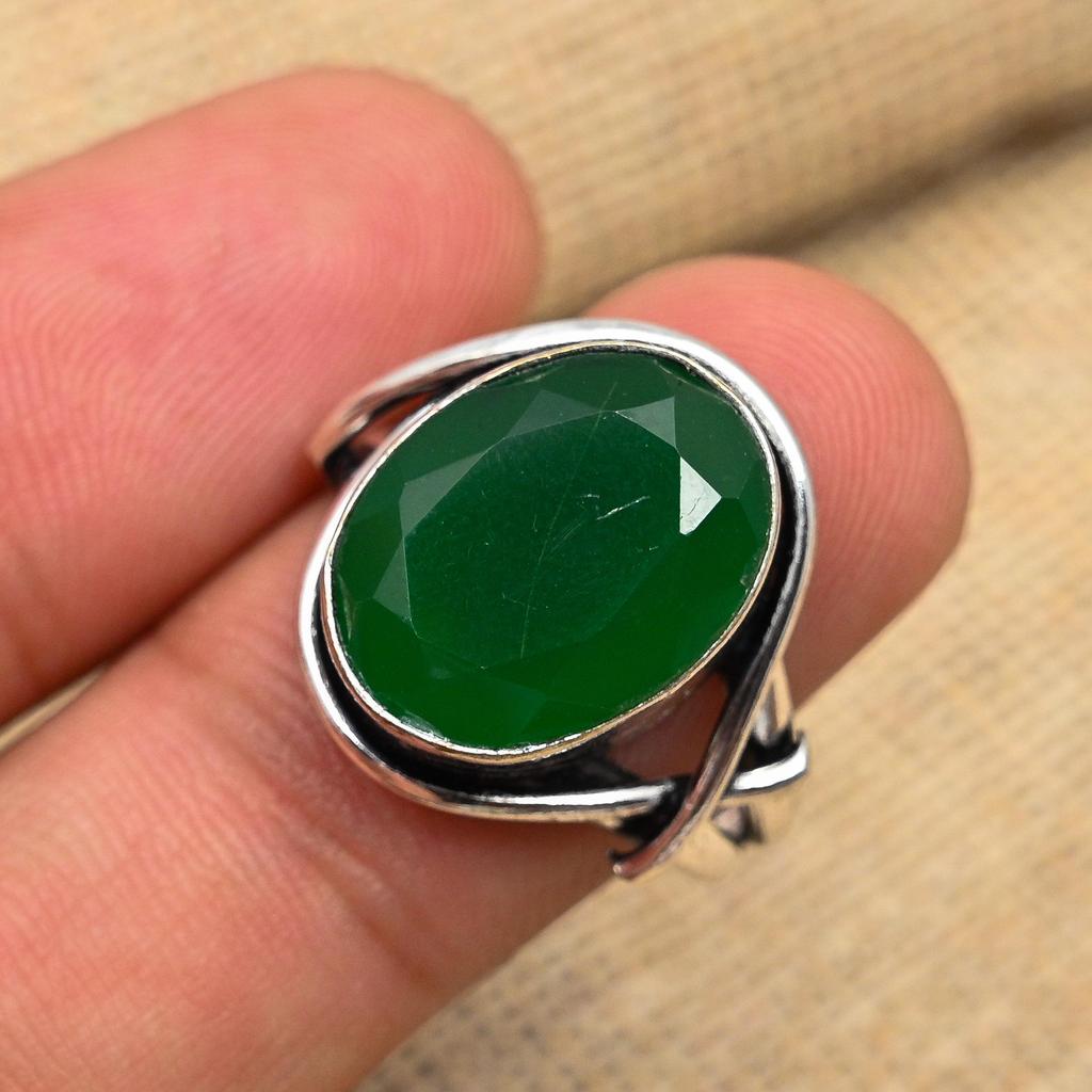 Ограненный зеленый оникс, драгоценный камень 925 пробы, стерлинговое серебро, милые кольца ручной работы ручной работы, ювелирные изделия
