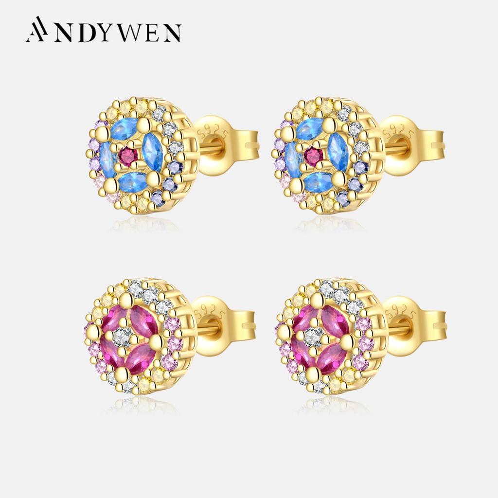 ANDYWEN Серьги-гвоздики из стерлингового серебра 925 пробы, весна, золото, радуга, CZ, серьги-гвоздики для пирсинга в стиле панк, новинка 2023, красочные ювелирные изделия