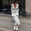 Белое трикотажное платье с высокой талией, модное женское платье с лацканами в рубчик, осень 2023, тонкое элегантное длинное платье, повседневное вязаное однотонное праздничное платье