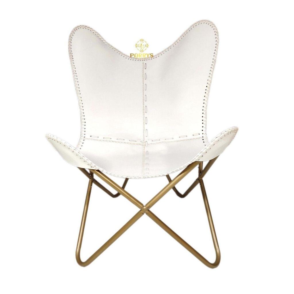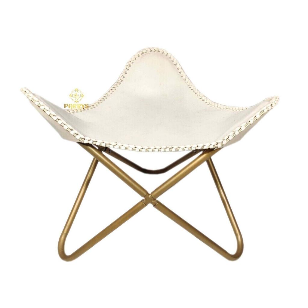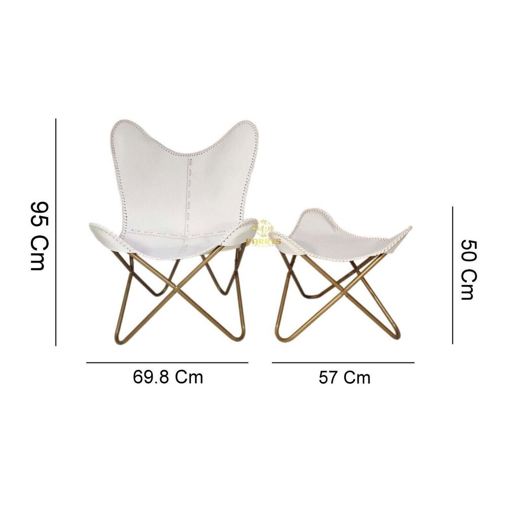 Белый шезлонг/табурет-кресло-бабочка из кожи ручной работы с оттоманкой