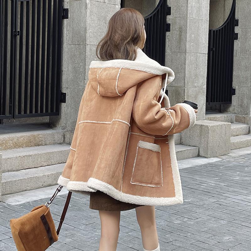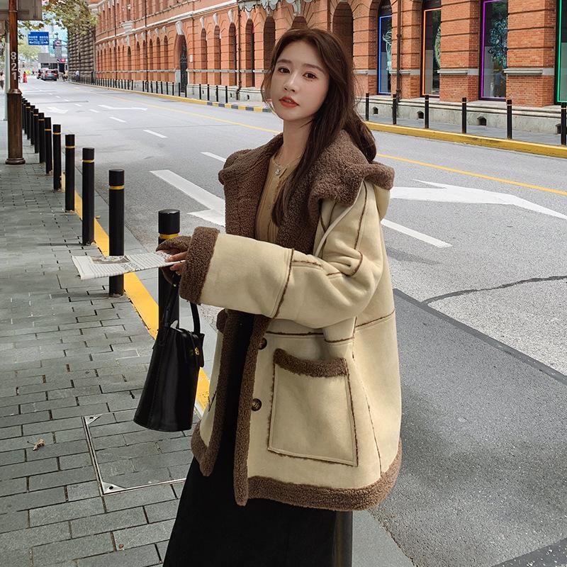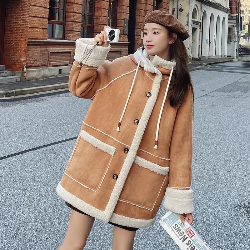Куртка из шерсти ягненка женская, новинка 2023 года, зимняя корейская свободная утепленная замшевая куртка для мотоциклистов