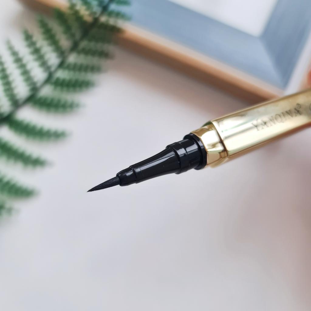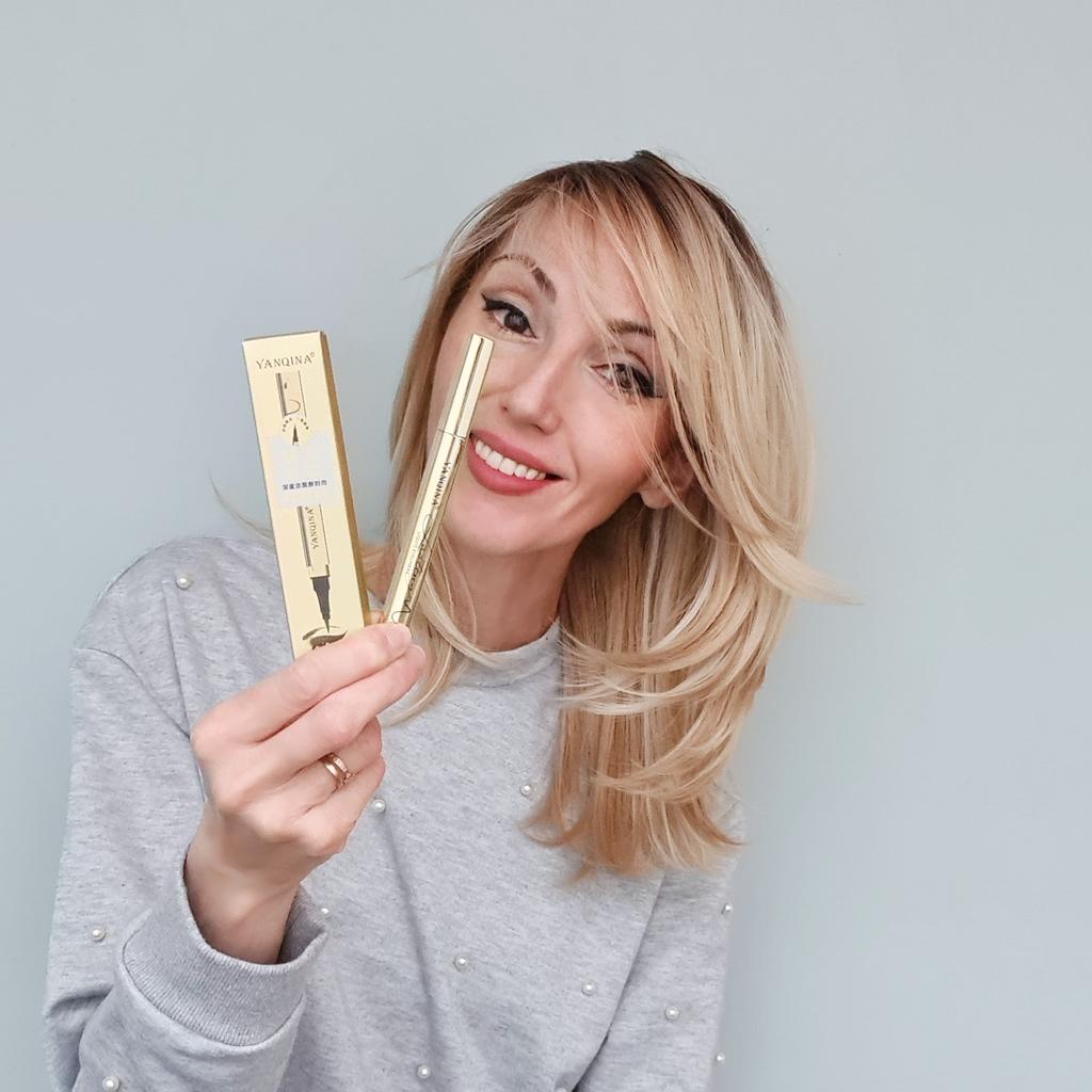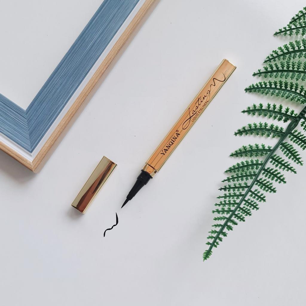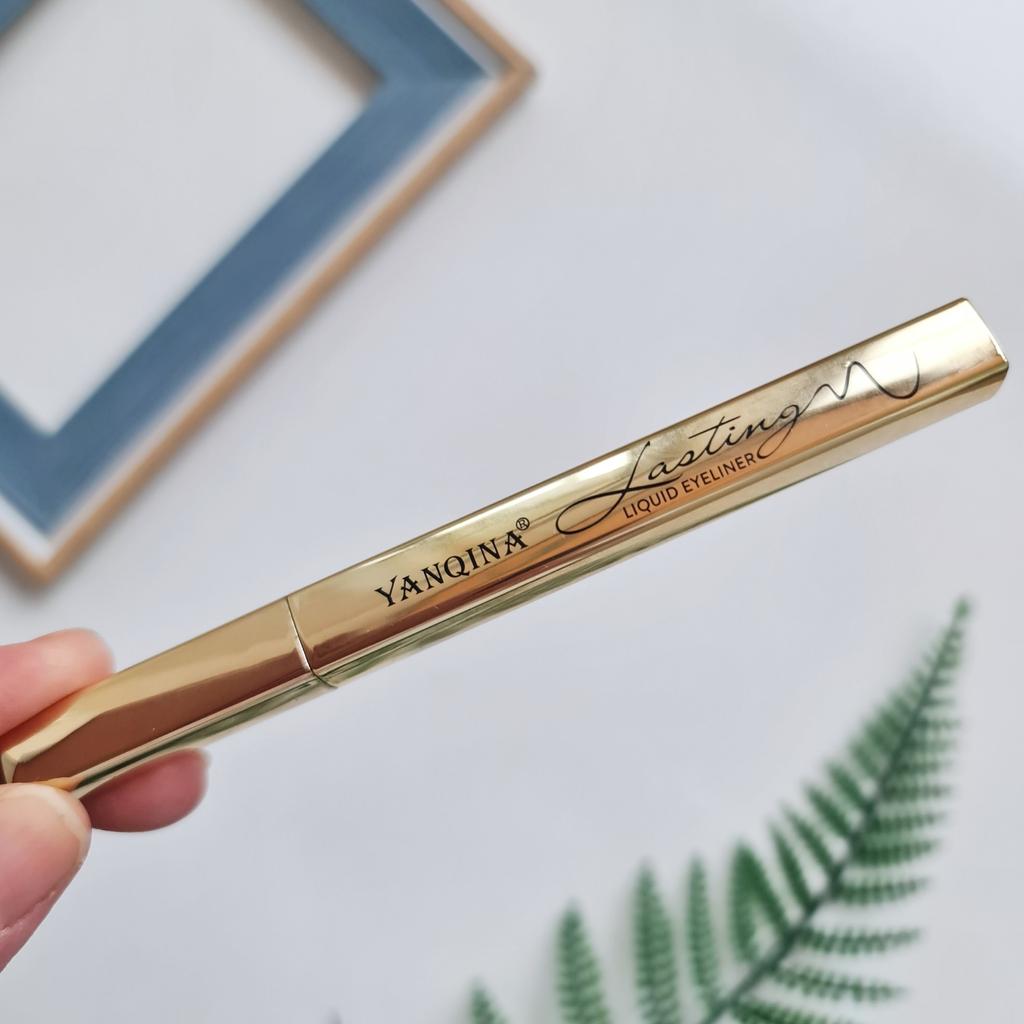 Хорошая бюджетная подводка от YANQINA. В красивом золотом тюбике. Действительно достойный лайнер за свою цену. Можно брать! Итак. Средство пришло в фирменной коробочке, тоже золотой))). Состав, срок годности, в общем вся информация на упаковке есть. Тюбик выглядит как фломастер. Удобро лежит в руке. Кисть заостренная, плотная. Такой удобно рисовать стрелки различной толщины. Само средство чисто чёрное. Не размазывается, не сыпется, не течёт. Хорошо держится в течении дня. Подводка заявлена как водостойкая. Легко снимается мицелляркой или гидрофильным маслом. Покупкой довольна! У меня все).