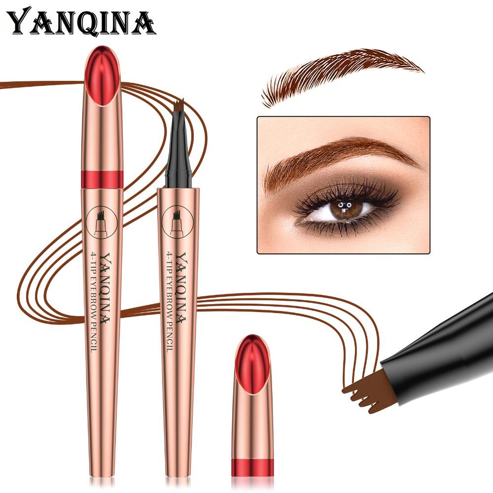 YANQINA Line Eyebrow Pen Карандаш для бровей с четырьмя вилками Жидкий карандаш для бровей — купить товар онлайн с бесплатной доставкой по всему миру!