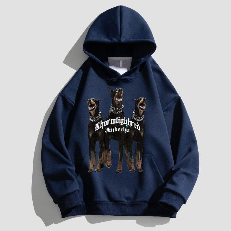 Осенняя мужская спортивная одежда с капюшоном и принтом Добермана, пуловеры в стиле ретро, модная повседневная уличная одежда для пар, одежда унисекс, одежда больших размеров