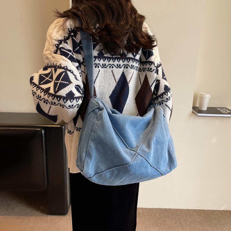 Женская сумка через плечо, студенческая школьная сумка, большая вместительная сумка через плечо, джинсовая сумка
