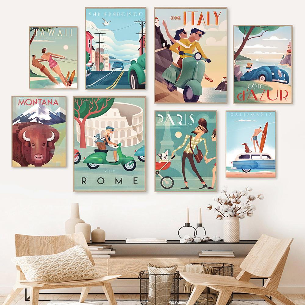 Винтажные всемирно известные достопримечательности, городские постеры и принты, Италия, Рим, Гавайи, холст, картина, настенная живопись для гостиной, домашний декор (с рамкой) — купить товар онлайн с бесплатной доставкой по всему миру!