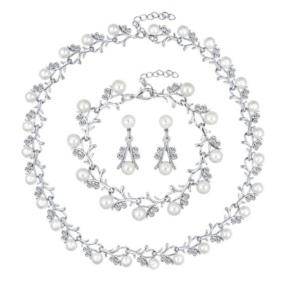 Женщины невесты искусственный жемчуг горный хрусталь ожерелье серьги браслет комплект ювелирных изделий