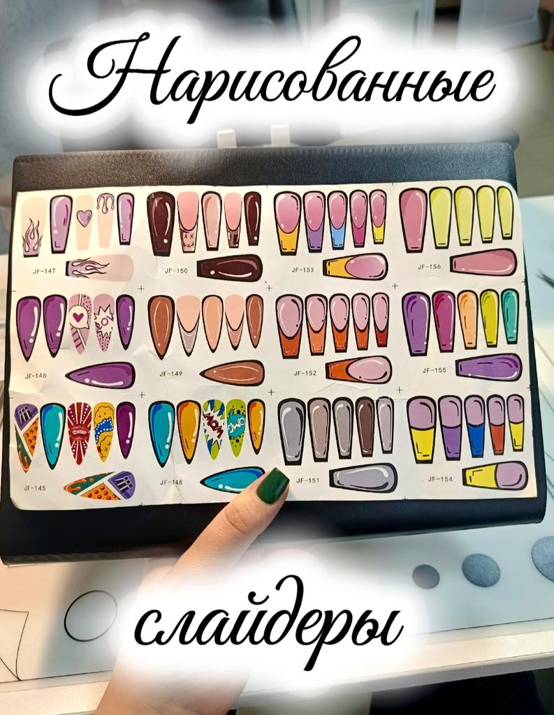 "НАРИСОВАННЫЕ" СЛАЙДЕРЫ ДЛЯ НОГТЕЙ Размер B ❤ красивые и яркие ❌ НУ ОЧЕНЬ ОГРОМНЫЕ СЛАЙДЕРЫ ДЛЯ ЛЮБЫХ СТАНДАРТНЫХ НОГОТКОВ, данные наклейки ВОЗМОЖНО подойдут на нарощенную длинную форму "стилетов" или "балерины" ❌ ОТВРАТИТЕЛЬНАЯ УПАКОВКА товара, лист достаточно большой (конечно бы его лучше намотать на мягкую тубу), но пришли в обычном пакете, все ИЗМЯТЫЕ в хлам, с СИЛЬНЫМИ ЗАЛОМАМИ на самих слайдерах, что конечно отразится на работе в маникюре, как ни разглаживай! ❌ всего наклеек 12 видов по 5 шт. а это значит, что ДВЕ РУКИ В ОДНОМ ФОРМАТЕ слайдеров сделать НЕ ПОЛУЧИТСЯ! ❌ также к наклейкам даже при желании не приспособиться - потому как, каждый рисунок имеет чёрную окантовку, так или иначе при работе будешь её срезать, и придётся дорисовать от руки, что отразится на временни работы и на доп.услуге! ❌ задумка шикарная, но недоработка полная! Брать или нет - выбор оставлю за вами!