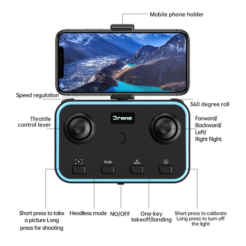 функции: Вверх / вниз, вперед / назад, левый / правый поворот, боковой полет, светодиодный свет, безголовый режим, однокнопочный автоматический возврат, режим удержания высоты, WiFi FPV